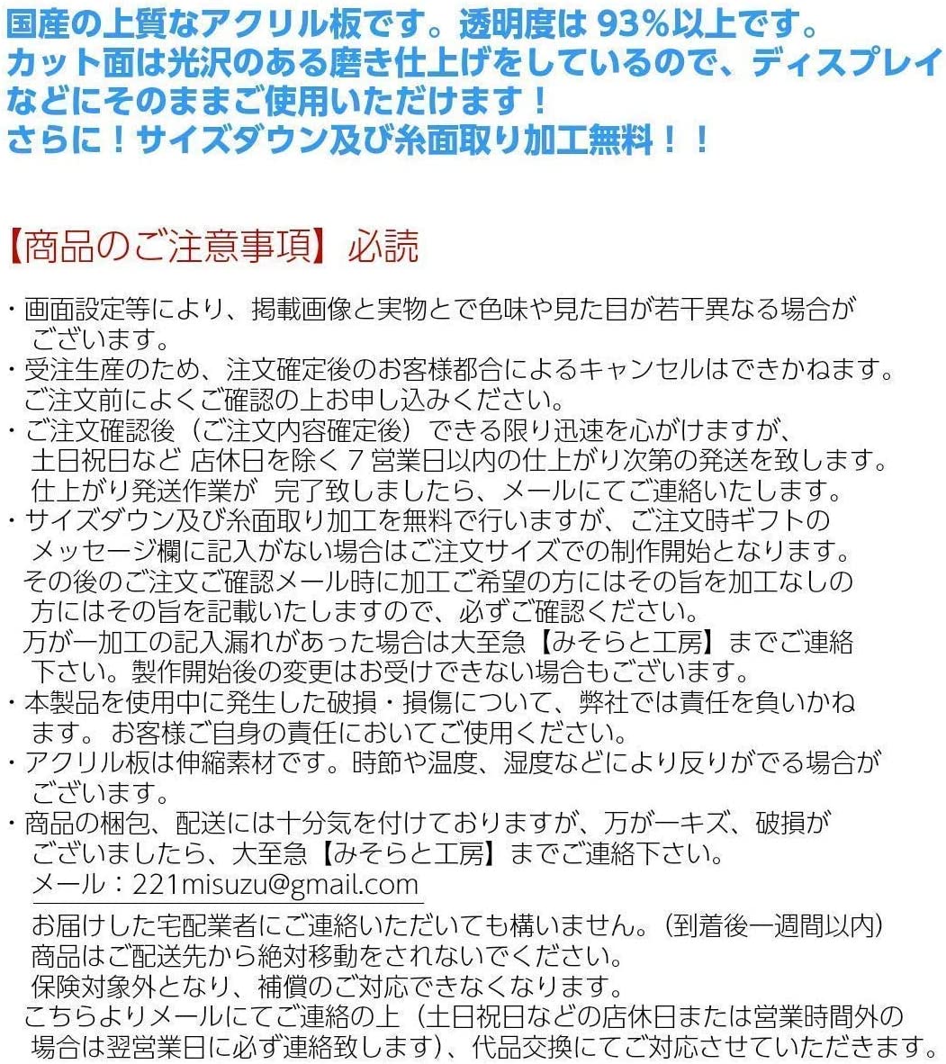 【2カット無料】450mm×450mm 透明(クリア)アクリル板(2mm) 国産 カット面磨き仕上げ!糸面取り加工も無料